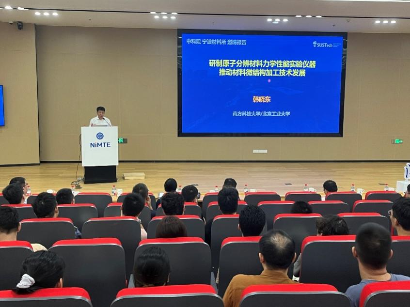 近日,中国科学院大学宁波材料工程学院“材料科学与工程前沿进展系列讲座”2025年第4期报告开讲。南方科技大学/北京工业大学韩晓东教授应邀做了题为“研制原子分辨材料力学性能实验仪器,推动材料微结构加工技术发展”的学术报告。报告会由中国科学院宁波材料所所务委员、科技处处长霍军涛研究员主持。