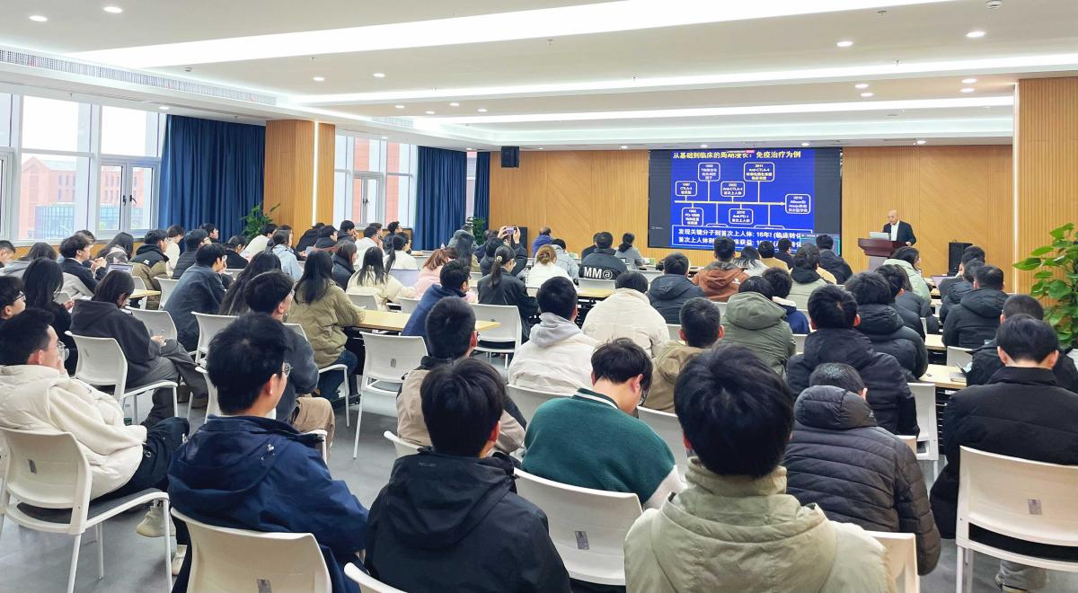 报告围绕纳米技术在临床的转化应用,以免疫治疗为例,指出基础研究到应用周期漫长的瓶颈问题,强调分子影像与人工智能融合是关键突破口。报告介绍了分子影像与人工智能融合的两大路径:一是构建“纳米探针+分子影像”全链条体系,通过ICG 荧光导航、核素探针及磁粒子成像技术(MPI)实现肿瘤精准外科手术中的导航与疗效动态监测;二是结合多态成像与 AI解析药物机制,加速靶向治疗性药物的研发。田捷表示,纳米技术的创新需要多学科的交叉融合,从国家重大需求出发,才能真正实现“从实验室到手术台”的转化。讲座尾声,与会师生就肿瘤术中导航、药物功能解析等问题展开深入讨论。