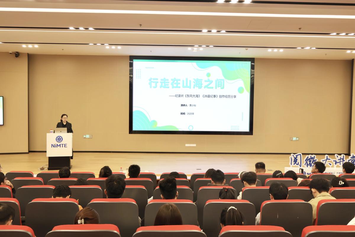 11月17日下午,中国科学院大学宁波材料工程学院成功举办2025年人文社科与艺术系列讲座第17讲。本次讲座特邀浙江广电集团重点纪录片总导演黄小裕担任主讲嘉宾,宁波材料所研究生处副处长陈益林主持讲座。黄小裕以《行走在山海之间——大型纪录片〈东向大海〉〈26县纪事〉创作分享会》为题,为现场150余名师生带来了一场精彩报告。
